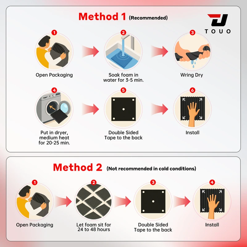 ◼After receiving, open the vacuum packaging and place the sound-absorbing panels in a ventilated place for about 24-48 hours.